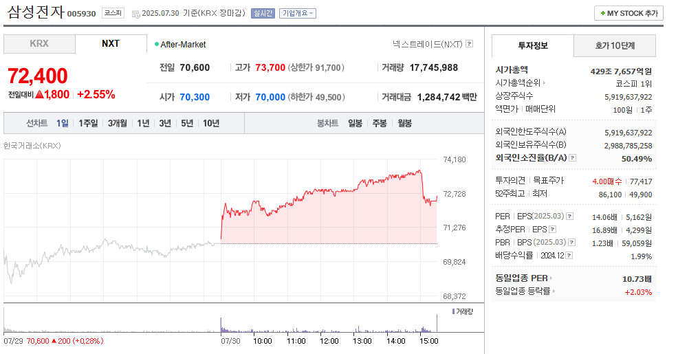 최근 삼성전자 주가가 드디어 7만 원 선을 돌파하며 시장의 이목을 집중시키고 있습니다.